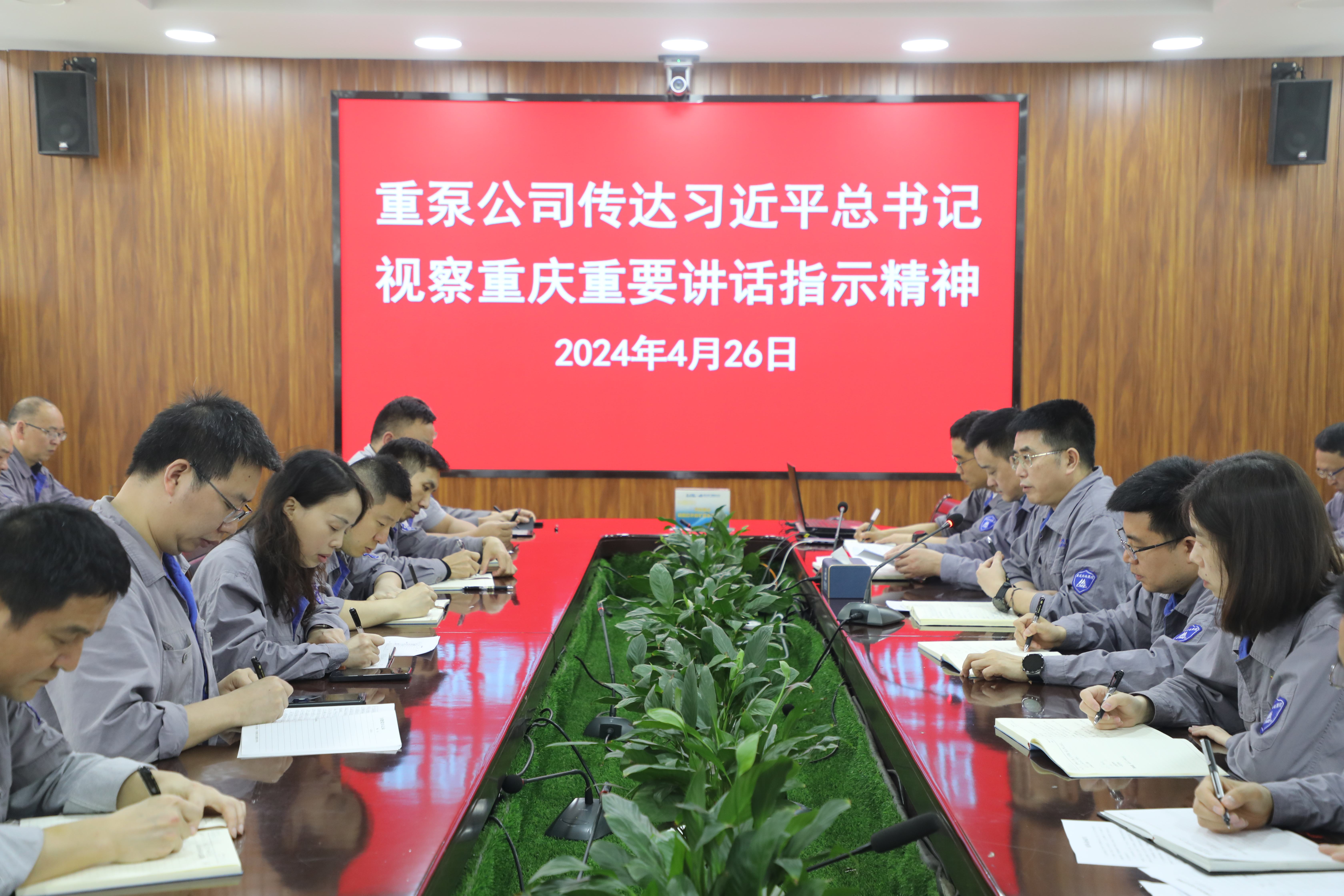 重泵公司班子成員、各部門中干、黨支部書記參加會議。會后,各黨支部組織干部職工對習近平總書記在新時代推動西部大開發座談會和視察重慶的重要講話重要指示精神進行了全員學習傳達。