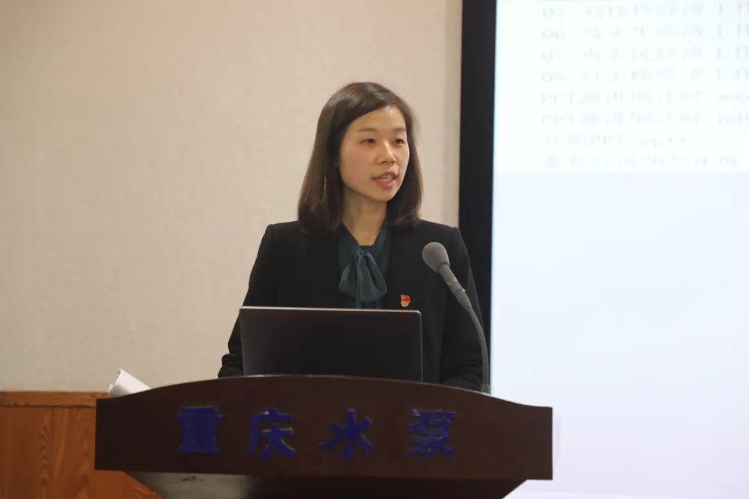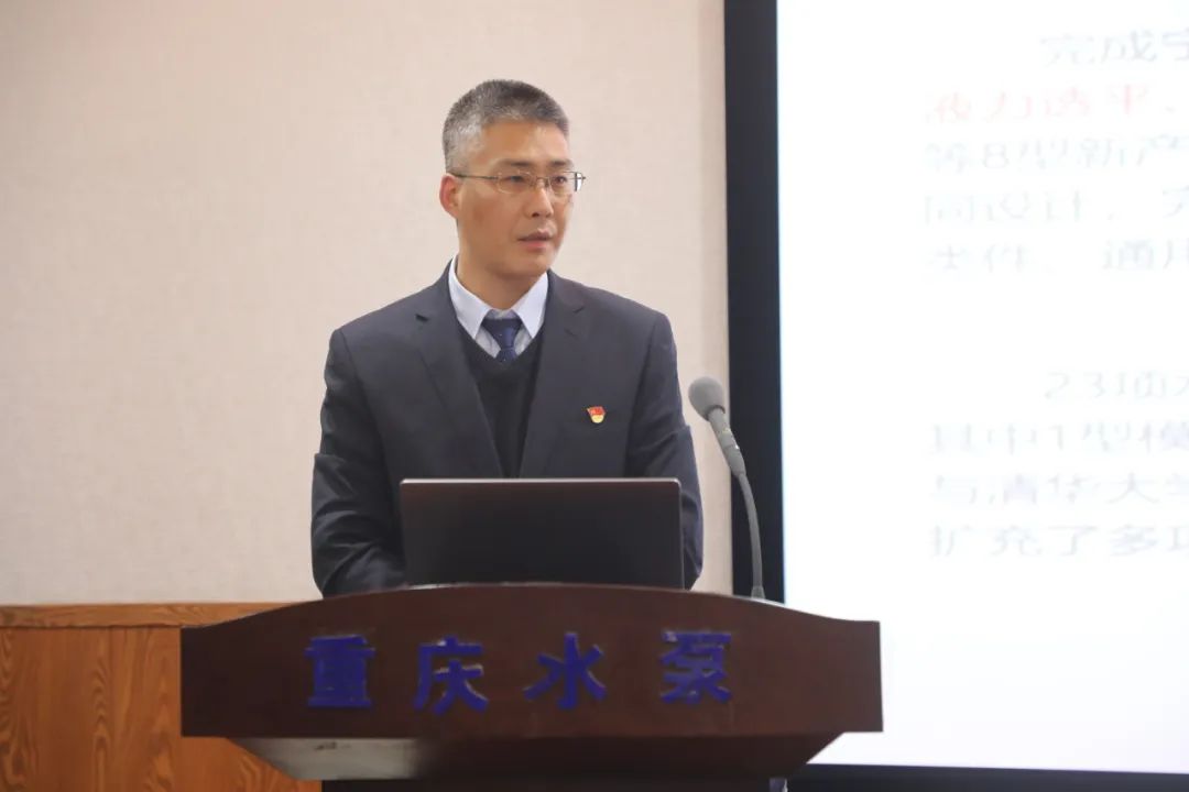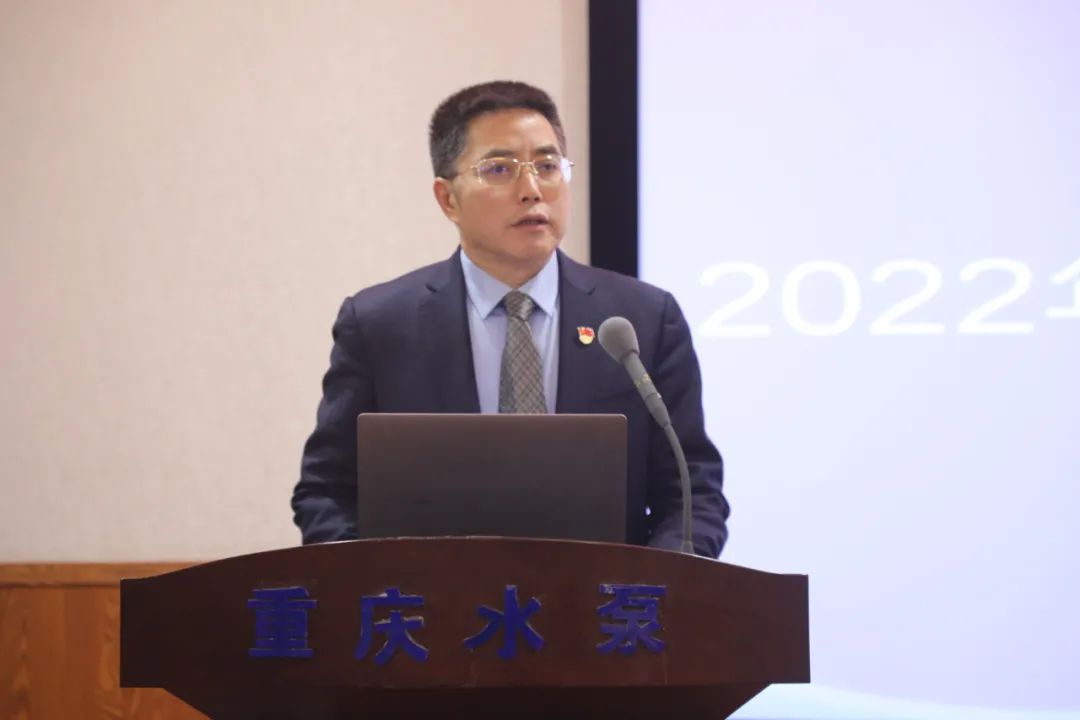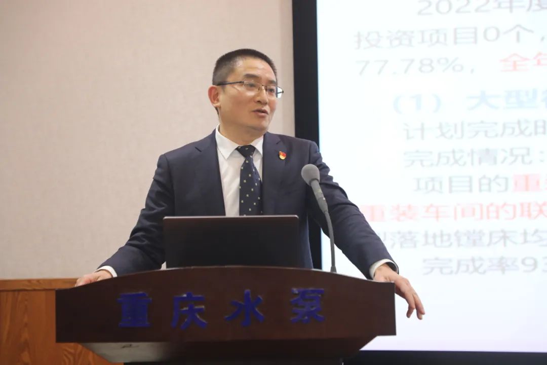 公司黨委副書記、紀委書記、工會主席李衛(wèi)作了《深學黨的二十大精神,全面從嚴治黨,奮力書寫重泵公司高質量發(fā)展新篇章》的黨委工作報告,副總經(jīng)理潘志敏作了市場和質量工作報告,副總經(jīng)理何智奎作了生產(chǎn)運行報告,財務副總監(jiān)劉佳玲作了財務工作報告,總工程師馬文生作了技術創(chuàng)新工作報告,副總工程師冉宏民、白小榜也分別就分管工作作了專題報告,黨委副書記、總經(jīng)理張波作了講話。