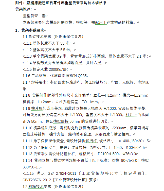 彩鋼庫搬遷項目 零件庫重型貨架采購 招標公告