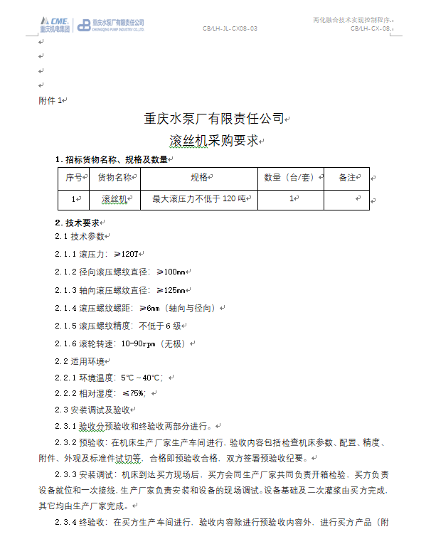 大型往復隔膜泵研發(fā)測試能力建設項目 滾絲機招標公告